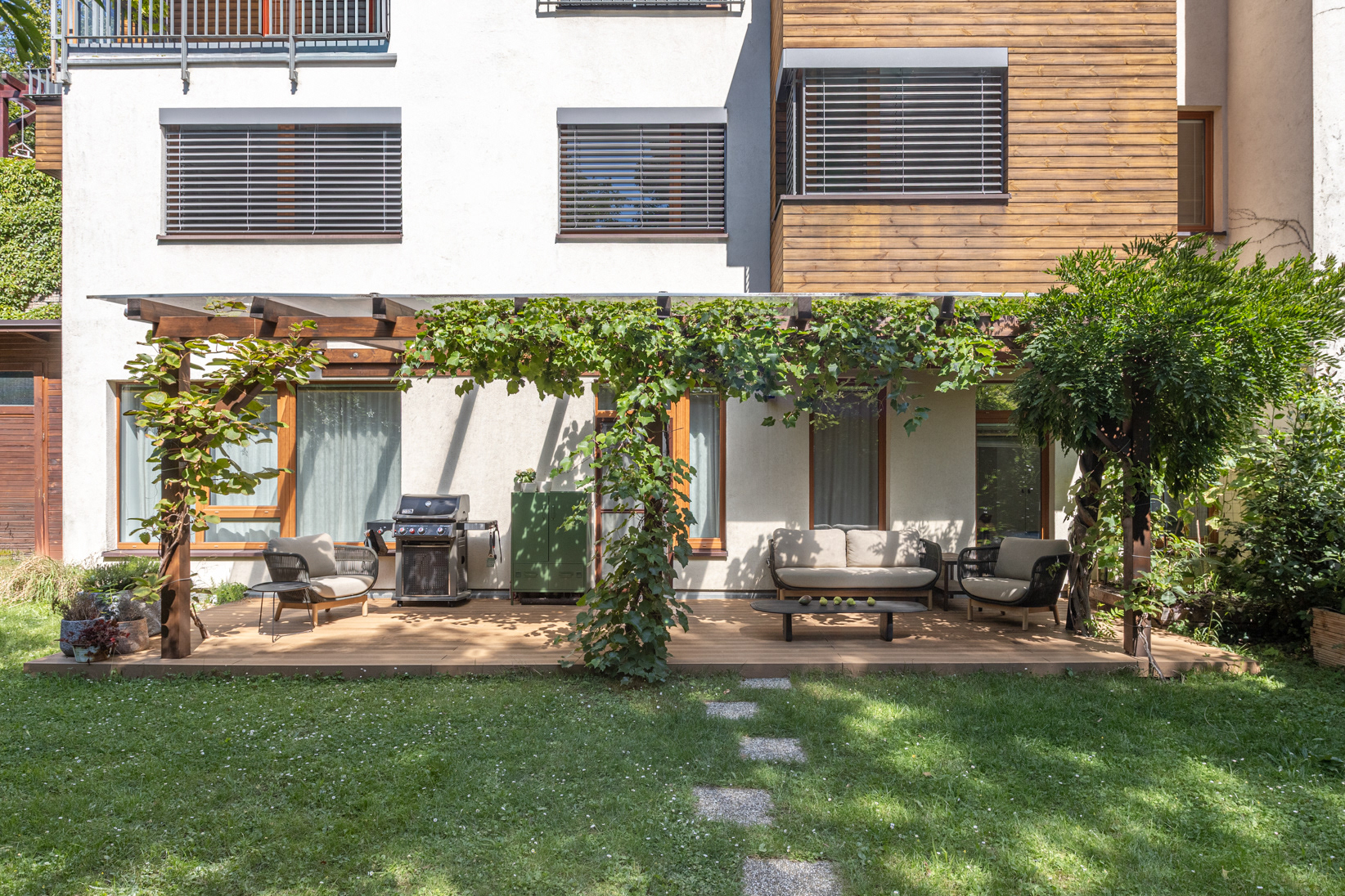 rekonstrukce terasy, obývacího pokoje s kuchyní, kompletní výměna schodiště,